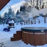 La Domek Babiogorski Z Jacuzzi Villa si trova a circa 2 km da Przełęcz Krowiarki e offre una jacuzzi e una vasca idromassaggio. Situata a pochi minuti di auto dall'Orava Ethnographic Park Museum in Zubrzyca Gorna, la villa offre Wi-Fi e un parcheggio privato gratuito.